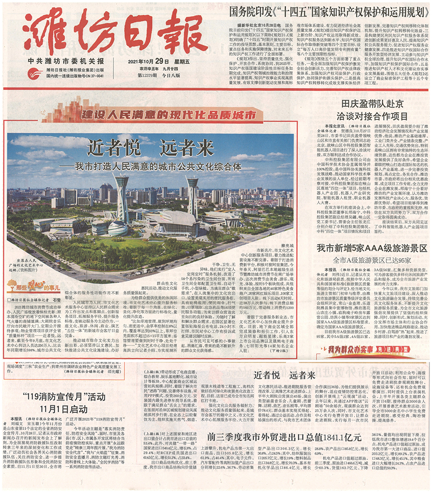10月29日,濰坊日報對我公司服務(wù)管理的濰坊市文化藝術(shù)中心項目進行了頭版報道,現(xiàn)就我公司服務(wù)管理的大型公共建筑項目做如下介紹: 近年來,伴隨經(jīng)濟的快速發(fā)展,居民文化水平、收入水平不斷增加,消費需求不斷升溫,進而帶動文化、娛樂、交通等公眾場館物業(yè)服務(wù)的需求逐年增加,......