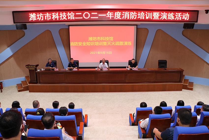 為保證濰坊市文化藝術(shù)中心各場館安全有效運行,扎實打牢濰坊市文化藝術(shù)服務(wù)中心安全基礎(chǔ),提高各入駐單位、商鋪人人了解消防安全常識,加強各單位人員火災防范和應(yīng)急處置能力,濰坊市科技館與濰坊市消防救援支隊及高新區(qū)消防救援大隊在濰坊市科技館聯(lián)合舉行了一次安全技能培訓及消防疏散演習。市科技館、昌大公管共計46人參加了消防演習。